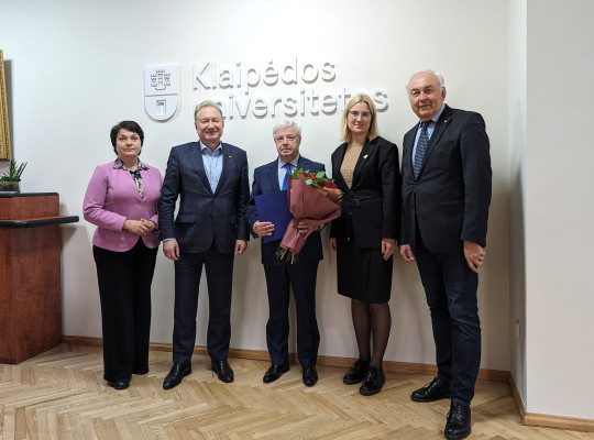 KU vadovai pasveikino prof. habil. dr. Vytautą Paulauską: padėkota už išskirtinį indėlį universitetui, miestui ir jūriniam sektoriui