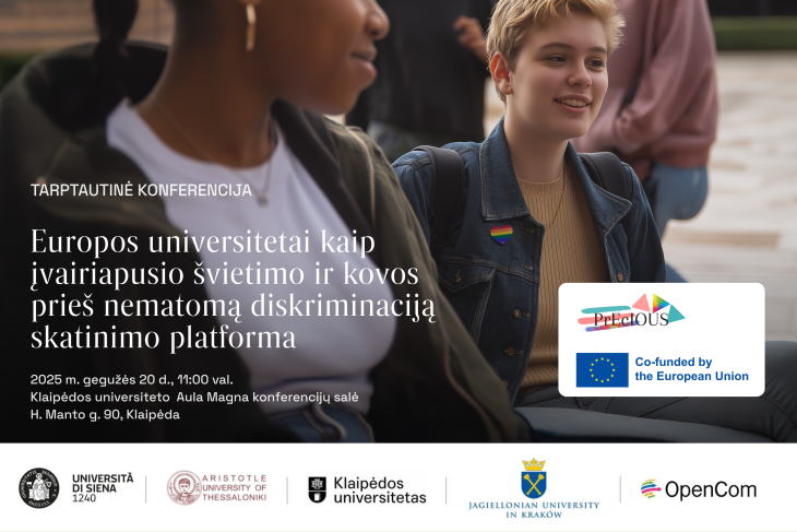 | Klaipėdos universitetas, dalyvaudamas tarptautiniame projekte „Pluralistinio švietimo skatinimas Europos universitetuose, kovojant su nematoma diskriminacija, susijusia su LGBTQ+“, gegužės 20 d. kartu su užsienio partneriais organizuoja konferenciją: „Europos universitetai kaip įvairiapusio švietimo ir kovos su nematoma diskriminacija platforma“. | ![]() |